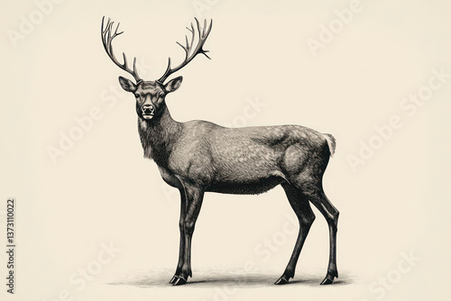 An elegant engraving or vintage illustration of a deer with magnificent, branching antlers.