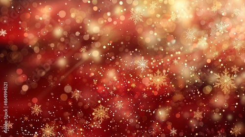 An elegant red background adorned with delicate golden snowflakes