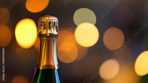 An Elegantly Captured Champagne Bottle Against a Beautiful Bokeh Lights Background, Perfect for Celebrations and Special Occasions