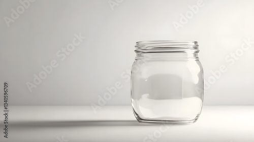 An empty glass mason jar sits on a neutral surface