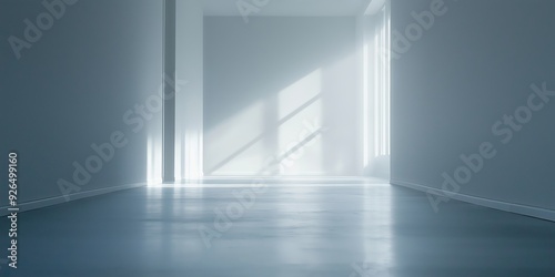 An empty, light-filled hallway with white walls and a minimalist design, highlighting the play of shadows and space.