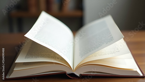 An empty open book with pristine white pages inviting boundless imagination and creative storytelling concept as Clean open book with blank white pages symbolizing endless imagination and the start of