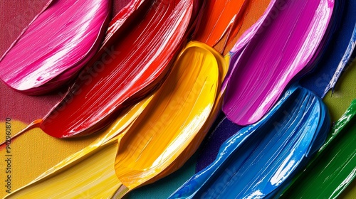 An energetic abstract composition of acrylic paint strokes, with vibrant colors blending and overlapping on the canvas