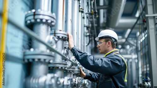 An engineer inspecting a wall of industrial pipes made with Ai generative technology