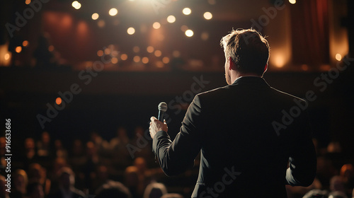 An executive giving a motivational speech at a corporate event. executive motivational