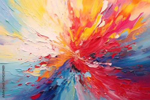 An explosion of colors in an abstract design, featuring vivid reds, blues, and yellows that flow and intertwine, reminiscent of summer sunsets.