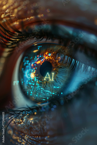 An eye with text "AI" reflection on it