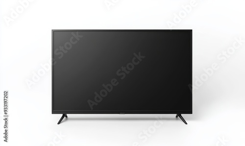An illustration of a black TV, flat screen plasma with a realistic image of plasma on the wall. A mock up of a black HD led monitor isolated on white background. A presentation on an LCD flat screen