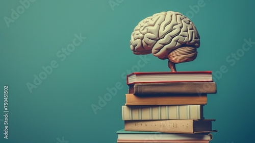 An illustration of a human brain flourishing with green leaves, sprouting from the pages of an open book, symbolizing knowledge, learning, and intellectual expansion in personal growth.