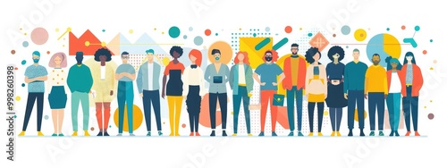 an illustration of Vector of a group diverse office worker, cooperative, business, finance, vector icon, flat style