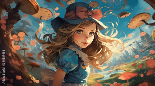 an illustration with a vintage, hand-drawn quality that captures Alice™s adventures in a richly detailed, storybook style.