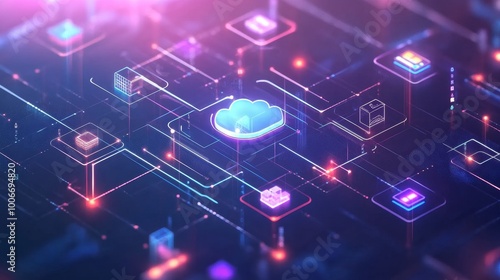 An illustrative image representing cloud computing, showcasing glowing nodes and digital connections, reflecting modern data networks and technology infrastructure.