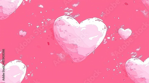 An image featuring a pink background adorned with large white hearts and various artistic splashes, representing love and affection with a romantic, playful style.