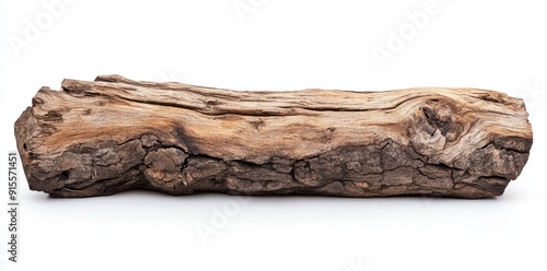 An image of a driftwood tree trunk set against a white background textured with a white background.