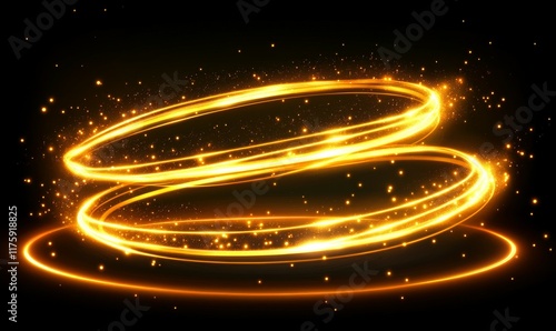 An image of bright lines highlighted with glittering particles. A magical energy curve coils, glowing like a festive ornament.