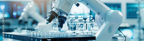 An image showing a robot in a lab coat conducting research in a hightech laboratory, automating scientific experiments