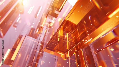 An immersive abstract geometric light installation with glowing orange cubes, creating a contemporary artistic display of depth and illumination.