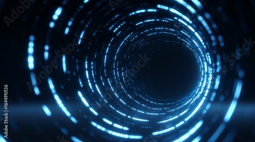 An immersive journey through a mysterious and dark underground tunnel illuminated by vibrant glowing blue neon lights creating a futuristic and abstract visual pathway forward.