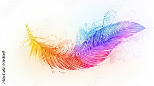 An infinity symbol, adorned with a vibrant rainbow feather, swirling decorative details in pastel colors
