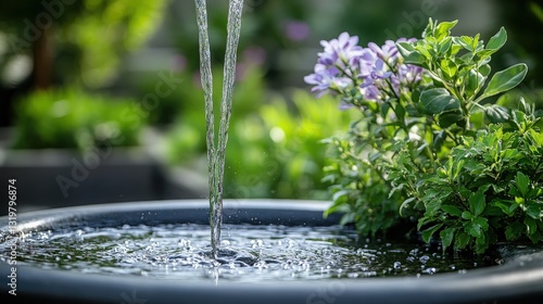 An informative image of water conservation tips, showcasing various methods like rainwater harvesting, low-flow fixtures, and drought-resistant plants, promoting efficient water use at home.