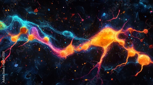 An inside illumination of a human brain, showcasing the complex network of synapses and neurons in vivid hues against a somber, gloomy backdrop. -