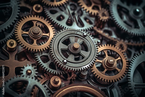 An insightful visual display of economic theories and market cycles, with interconnected gears and cogs symbolizing the intricate workings of economic systems