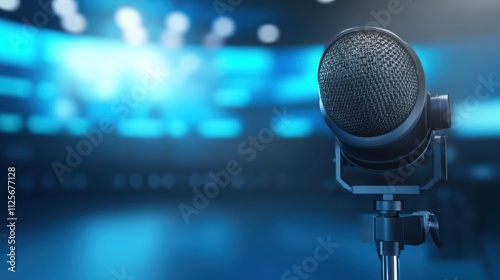An interview is being recorded in a modern television studio, highlighting advanced media technologies with a blurred background for emphasis. Generative AI
