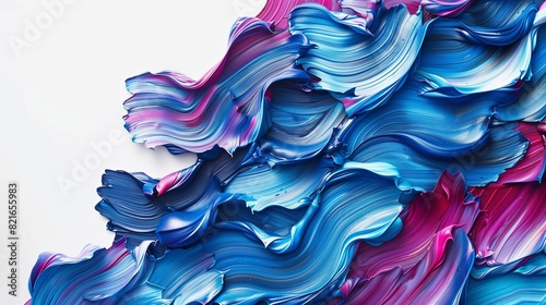 An intricate abstract background with textured layers of blue and magenta oil paint, creating a sense of depth and movement on a pristine white background, with bold, vivid colors,