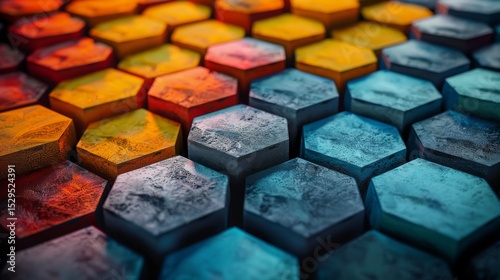 An intricate and colorful hexagonal pattern that showcases geometric design elements, presenting a vibrant visual that attracts attention and engages viewers creatively.