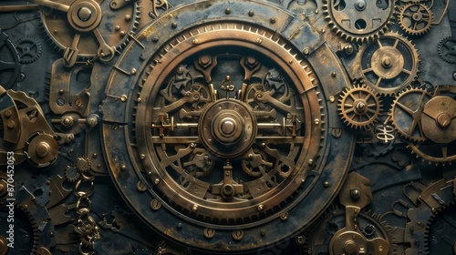 An intricate, clockwork-inspired lock mechanism, interlocking gears and coded symbols representing the complexities of encryption, photorealistic