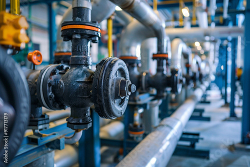 An intricate network of pipes and valves in a water treatment facility, a vital artery of modern urban infrastructure
