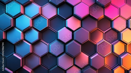 An intricate pattern of overlapping, luminous hexagons with gradient color shifts, modern and complex