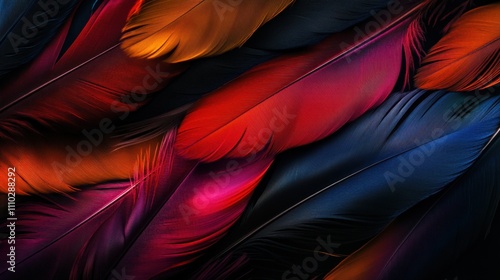 An intricate scene of abstract, multi-colored feathers merging into a single, unified plume on a dark background