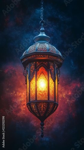 An Intricately Carved Lantern Glows Warmly Against A Dark, Cosmic Backdrop. Its Light Offers A Sense Of Hope And Serenity In The Vastness Of Space.