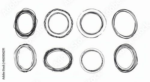 An isolated set of modern scribble ovals, bubbles and elongated circular forms. Handwriting outline frames for underlining text.