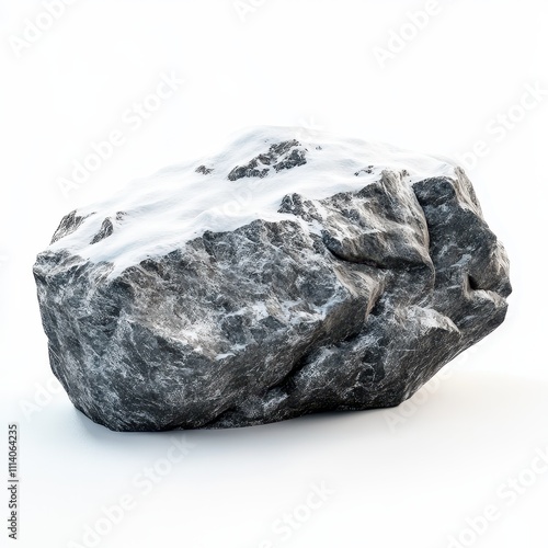 An isolated, white-backgrounded, snowy-topped boulder featuring a clipping path.