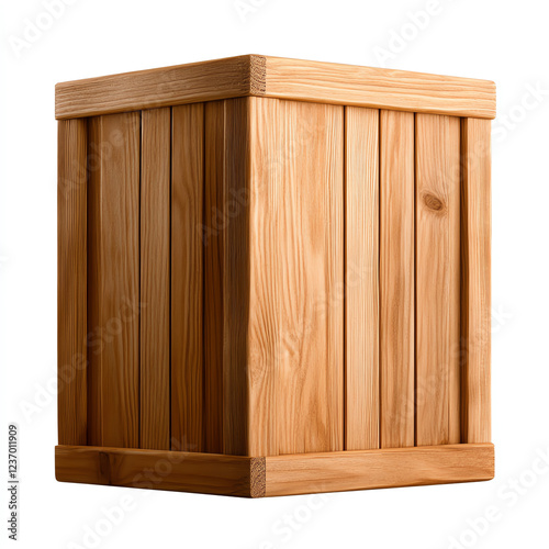 An isolated wooden crate showcasing a simple and sturdy design, perfect for storage or shipping purposes