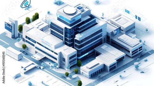 an isometric 3D Smart Hospital building, portraying a technologically advanced healthcare facility