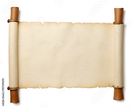 An old parchment scroll with a wooden frame, against a plain background