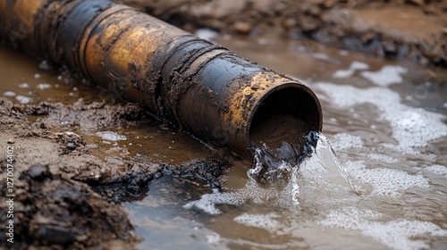 An old water pipe rusting and bursting, with water leaking out, highlighting the urgent need for plumbing repairs to prevent damage.
