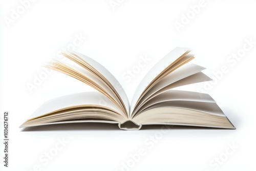 An open book with blank pages resting on a white surface showcasing its elegant spine and texture