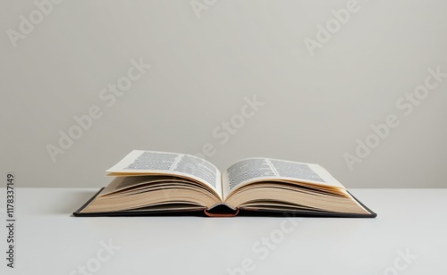 An open book with crisp white pages spread wide against a warm beige background, inviting exploration and discovery.