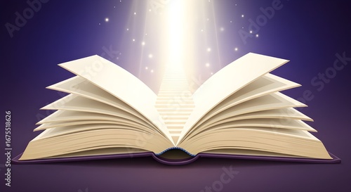 An open book with shining staircase coming from the pages, illuminating the path to knowledge, set on a dark