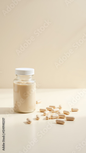 An open bottle of magnesium glycinate with tablets spilled out on a light surface, conveying themes of supplementation or medication administration.