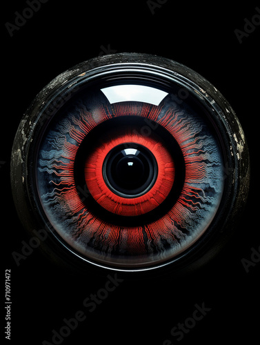 An open camera aperture that morphs into an eyeball, in the style of surrealism created with Generative Ai