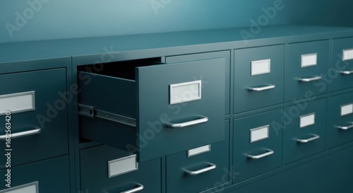 An open drawer in a metal file cabinet for document storage
