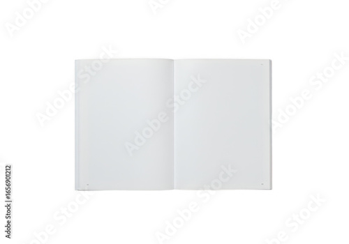 An open notebook with blank white pages, isolated on a transparent background