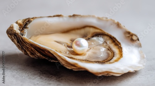An Open Oyster Shell with a Pearl – Iridescent Gem Nestled in Rough Mollusk Shell, Revealing Nature’s Hidden Luster in Coastal Treasures