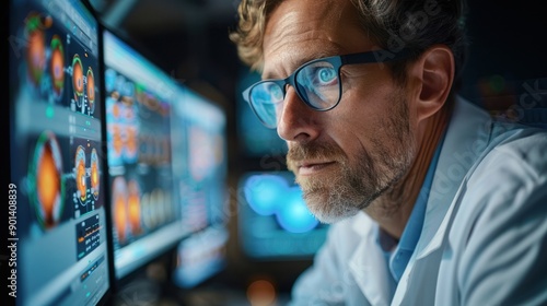 An optometrist reviewing a digital scan of a patient's retina, highlighting the use of advanced diagnostic tools