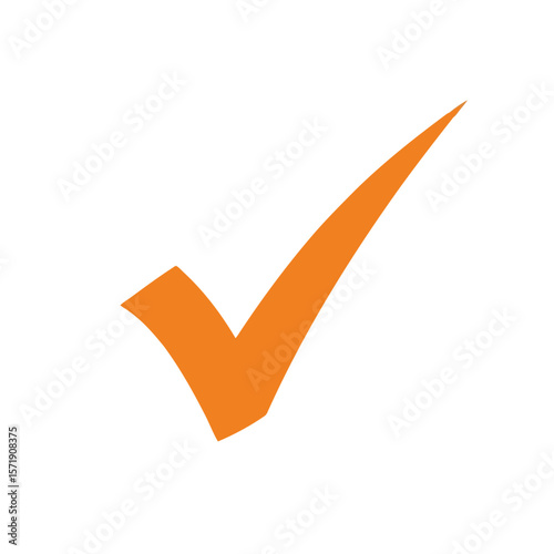 An orange check mark isolated on white background signifies a successful validation and confirmation